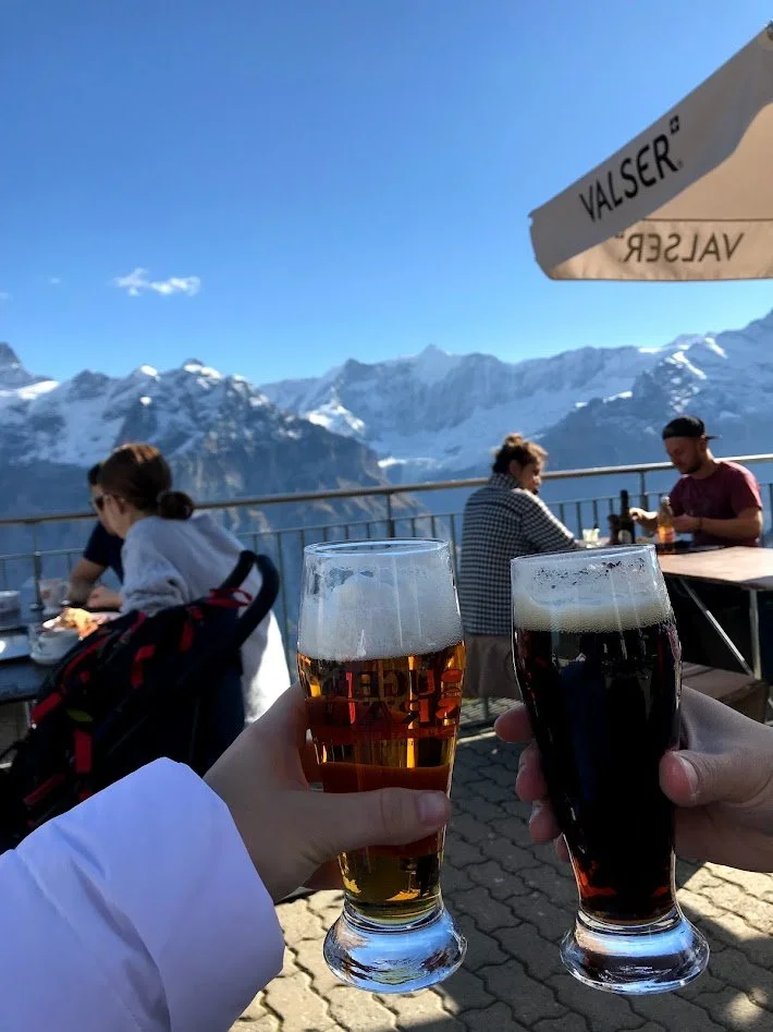 Once we got to First, we walked around to take in the views which was, again, incredible. As we went in early October, it was less “green” than I had imagined, but nonetheless, beautiful. Specifically, the views of Mt. Eiger and Jungfrau is something out of a postcard. After debating whether we should do a short hike with Eli strapped in our baby carrier (and opting not to do it), we grabbed a seat outside the cafe with cold refreshing beer and our packed lunch. The breeze. The view. The food. The beer. Everything was perfect.