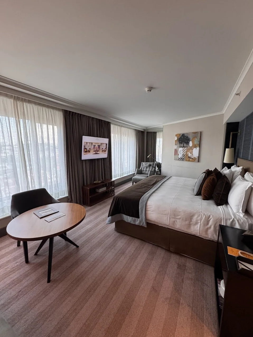 We checked into a Deluxe Junior Suite, which was incredibly spacious—a must when traveling with an active eight-year-old! The room featured massive windows that flooded the space with natural light and offered sweeping views of the Lisbon city.