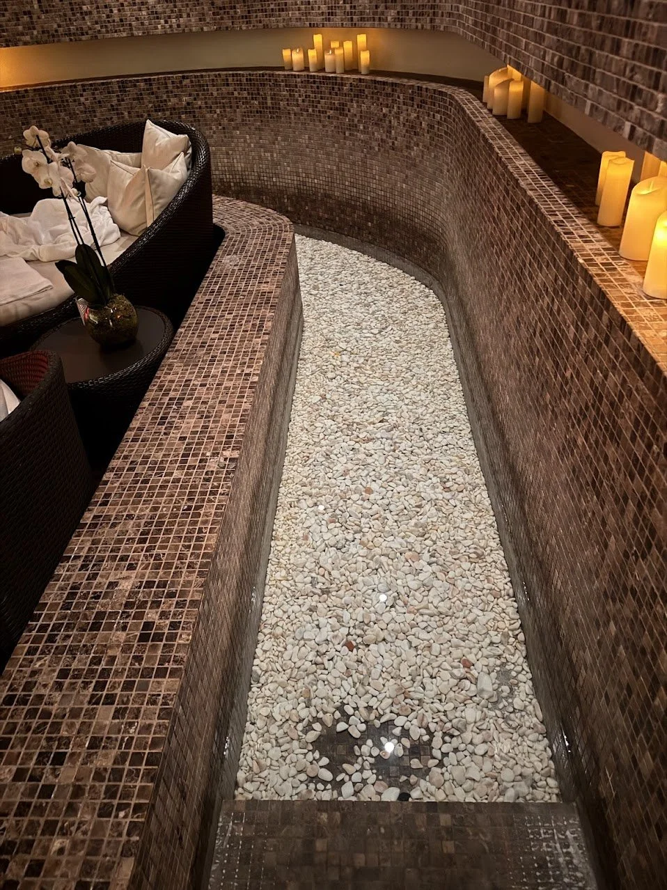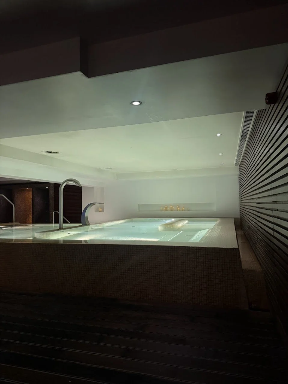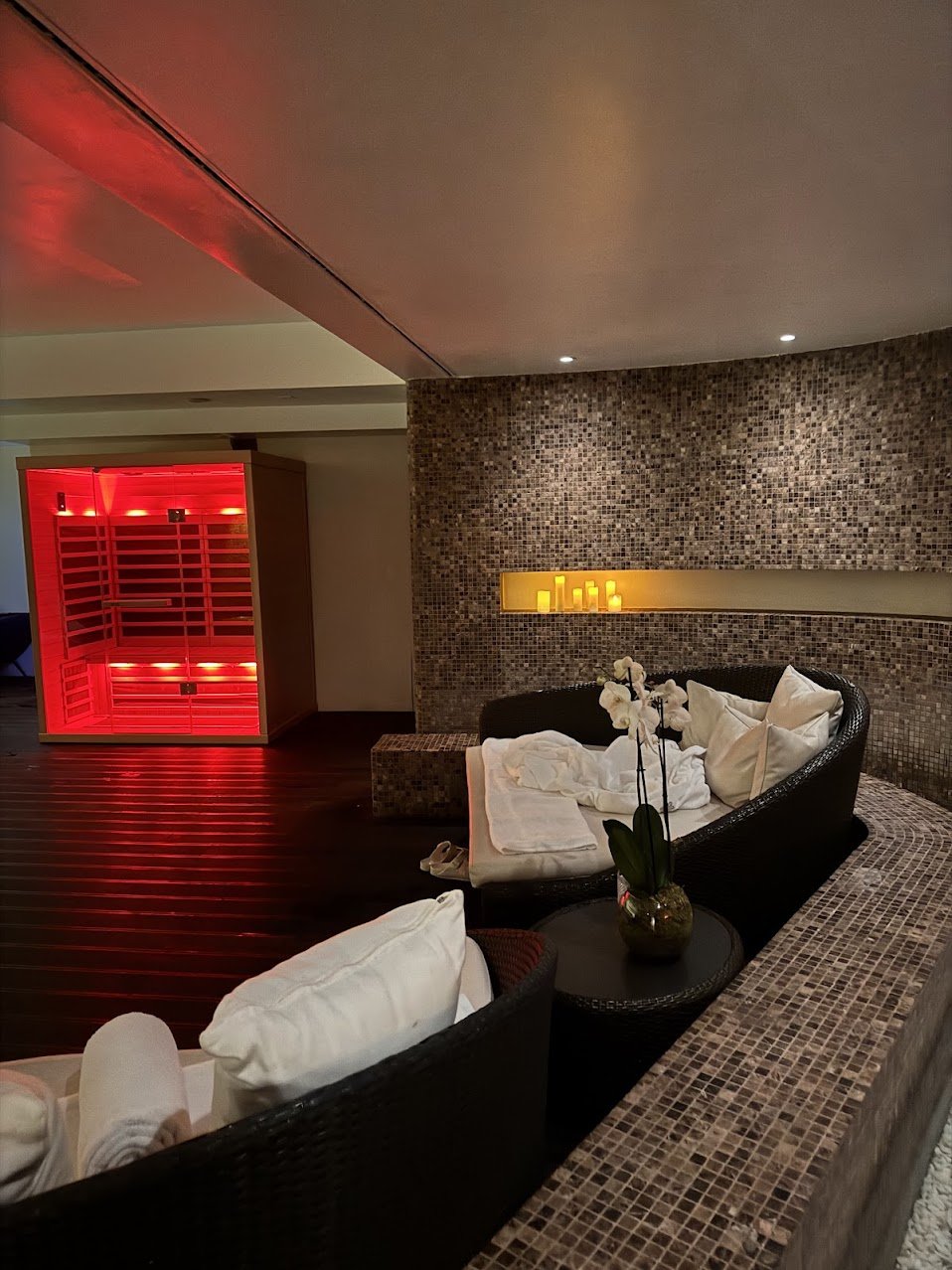 I spent an hour in the hydrotherapy circuit, and I highly recommend it. Since it was a weekday, I practically had the place to myself! The circuit features three types of showers, a steam room, a dry sauna, and an infrared sauna.