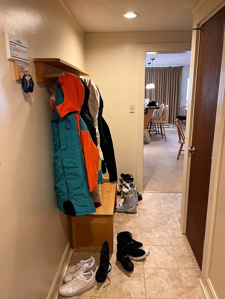 Upon entering the unit, you're greeted by a foyer equipped with a coat hanger and space to take off your ski boots. This was a great feature, especially after a day on the slopes. The unit also had a ski locker on the first floor, which made it easy to store our equipment without cluttering the living space.