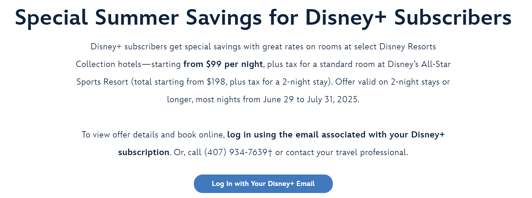 Booking Requirement: Must book through the official Disney+ subscriber offer page