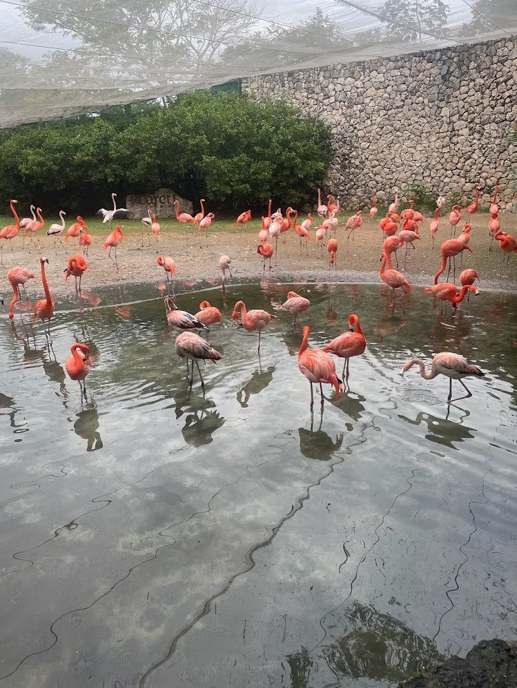 One of the first experiences we decided to dive into, quite literally, was swimming in the park's famous underground rivers. Xcaret boasts three distinct rivers: the Blue River, the Pre-Hispanic River, and the Manatee River, each flowing into the sea beside vibrant mangroves and pink flamingos. The rivers, born from the earth's interior, navigate through caves and tunnels, illuminated by natural light. Swimming through these waters, we observed coral formations fossilized on the rock, a testament to the area's ancient marine origins.